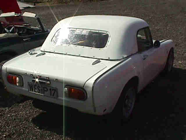 Honda S800 cab. Racing Car . 62mm Toda pistons, Race cams, 5 speed gear box and about 95 HP. The car is very low. Only 6 cm from frame to the ground in the front. Dunlup brakes calibers in the front with 2 pistons.